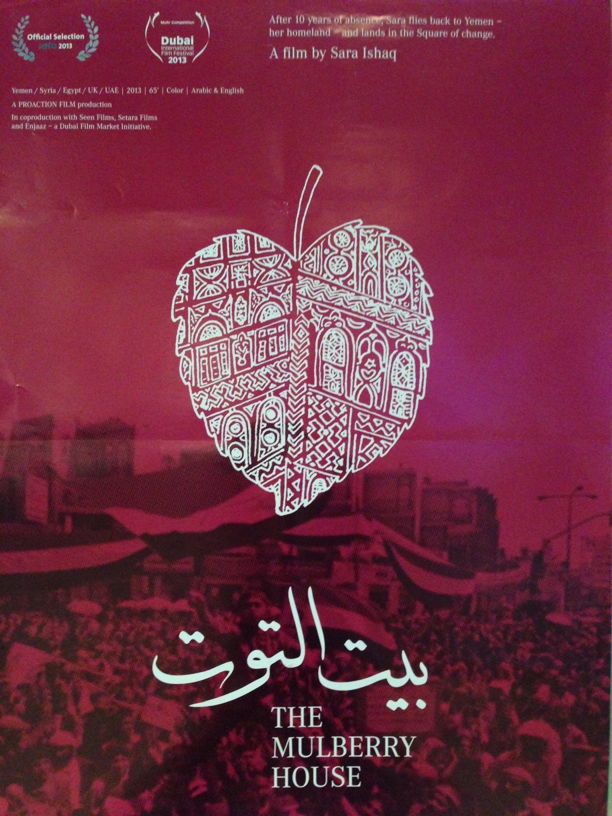 Eine jemenitisch-schottische Filmemacherin kehrt nach zehn Jahren zurück in das Land, in dem sie aufgewachsen ist: Die Maulbeerbäume im Hinterhof tragen Früchte wie eh und je - doch die jemenitische Revolution draußen vor der Tür macht vor Saras Familie nicht Halt. Ägypten, Vereinigte Arabische Emirate, Großbritannien, USA, Yemen 2013, Regie: Sara Ishaq, Originalfassung: arabisch Untertitel: englisch